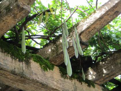 あの暑さはどこへ行ったのかと思うくらい、涼しくなってきました。生徒玄関前の桜の木は葉が落ち始めています。また、藤の木の実が大きくなっています。