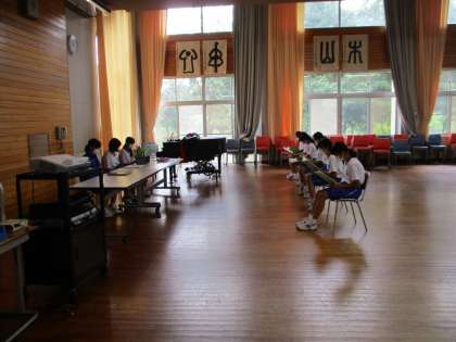 画像は11Hの音楽の授業で、ランチルームでパート毎の練習をしています。
