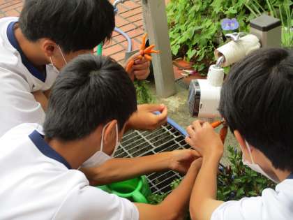 2年生の技術の栽培の授業では、野菜の収穫の時期を迎えています。