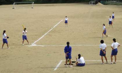 画像は、1限の33Hの保健体育でソフトボールをしている様子です。とてもさわやかなグラウンド状況なので、とても楽しく試合をしていました。