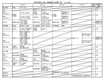 日程と会場については、下の画像のとおりです。詳細な画像は、実施日や会場等をクリックするとご覧になれます。