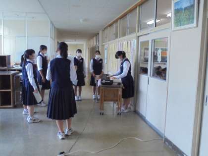 画像は、35Hが教室と廊下に分かれて練習している様子です。