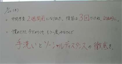 1年 メッセージ 9月24日(木)