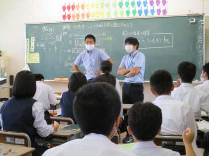 画像上:11H数学 「比例式に含まれる文字の値を求めよう」 2人の先生は兄弟?