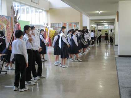 今朝は、最後の選挙運動になりました。雨天のため生徒玄関ロビーでの活動となりました。