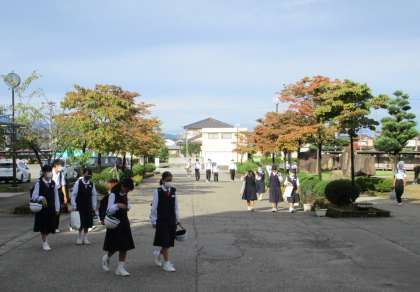 生徒の登校時間には天気がよく、さわやかな朝でした。