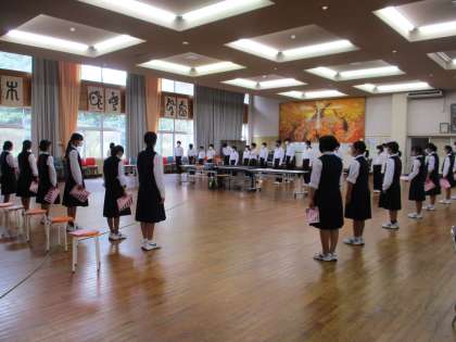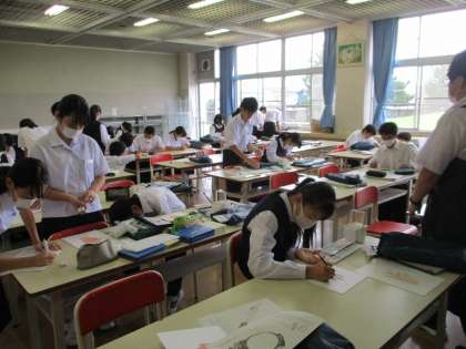 画像上:13H音楽 音楽の授業でランチルームで合唱練習をしています。