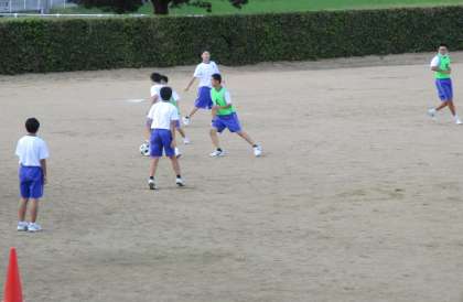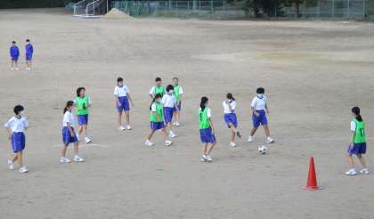 保健体育では、サッカーを行いました。サッカーの授業は初めてという生徒もいましたが、男女別で簡単なゲームをして、サッカーの楽しさに触れていました。