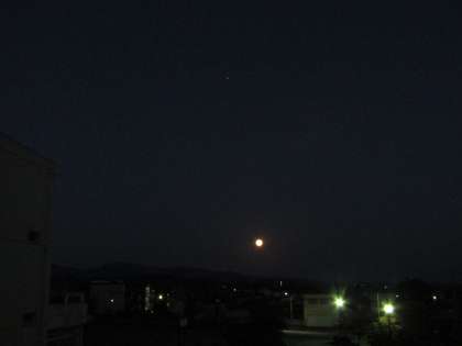 上の画像は、月の上に火星が見えています。明日はもっと接近するようです。