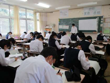 画像下:24H数学 中間考査に向けて、いろいろな問題に取り組んでいました。