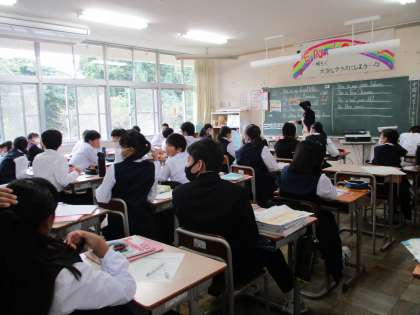画像下:14H保健体育 保健分野「心はどのように発達するのだろう」教育実習生の授業です。