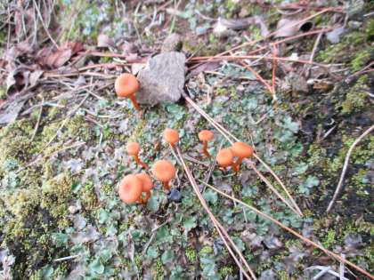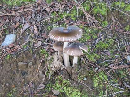 校舎西側の道路に面したのり面(斜面)にいろいろな種類のキノコが生えています。