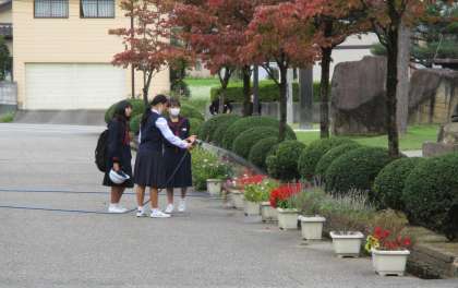 今朝も1年生のボランティア実践部の水やり当番が、プランターと花壇に水やりをしてくれていました。ボランティア実践部の皆さん、毎朝、ありがとうございます。