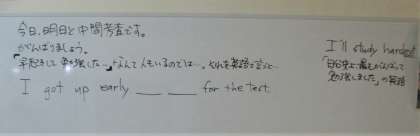 画像下は、3年生のホワイトボードです。簡単な英文ですが、毎日やってみると力がつきます。