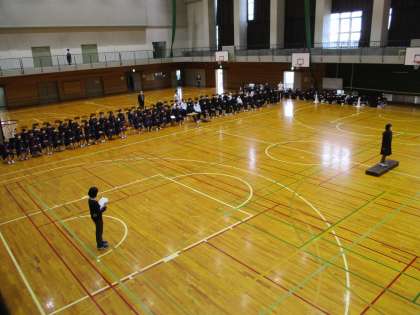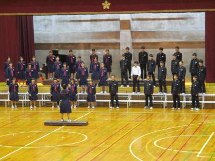 最初は座席からの動きとステージ上の並びを確認してから、本番と同じように各学級が歌いました。どの学級も練習の成果が出たよい合唱でした。あと5日です。本番が楽しみです。
