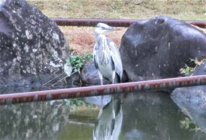 5月に友情の池に来ているサギを紹介しましたが、今朝もサギが来ているのを見つけました。池の小魚(金魚?、フナ?、メダカ?)を狙っているようです。5月のサギとは違うようです。