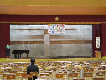 明日の合唱コンクールに向けての体育館の準備が完了しました。