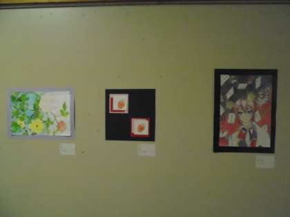 被服室前に展示してあった美術部の作品です。