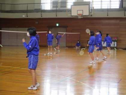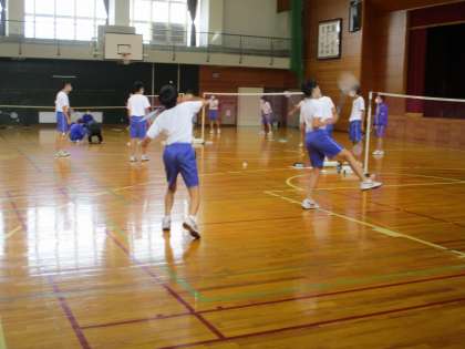 画像上、中:31H保健体育 バドミントンでダブルスの試合をしていました。