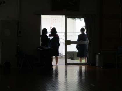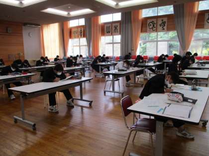 画像は33Hの音楽で、ランチルームで合唱コンクールの曲で歌唱テストをしていました。