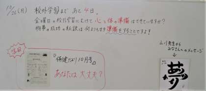 画像下:3年のホワイトボードには教頭先生からのメッセージが。