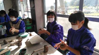 24名の生徒が、「陶芸工房・黙土」で陶芸体験を行いました。