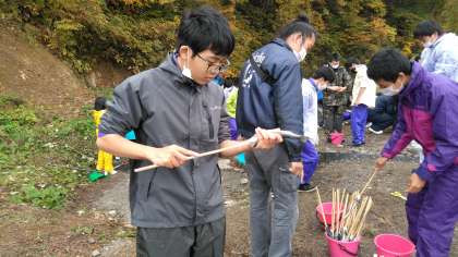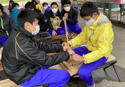 次は、火をおこしました。最初は火起こし器(舞錐法)を使いましたが、なかなか火を起こすことができませんでした。
