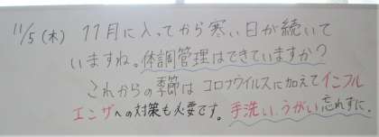 今日のホワイトボード 11月5日(木)