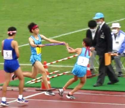 画像中:第2走者から第3走者へのリレー
