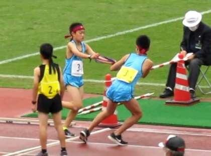 画像上:第5走者が陸上競技場に戻ってきたところです