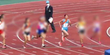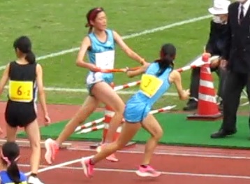 画像中:第1走者のラストスパート。1位との差は1秒でした。