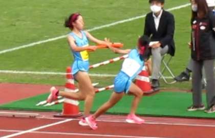 画像中:第2走者から第3走者へのリレー