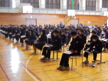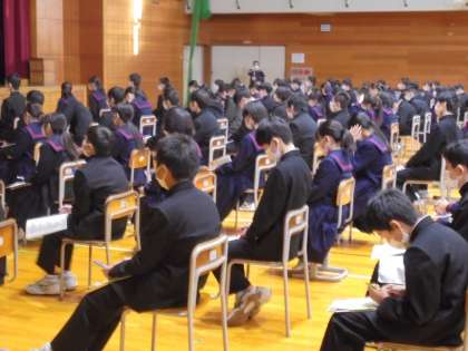 2年生は明日の校外学習に向けて、5限に体育館で事前学習をしました。