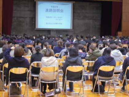 本日5限、進路説明会を行いました。多くの3年生の保護者の皆様に参加していただき、ありがとうございました。