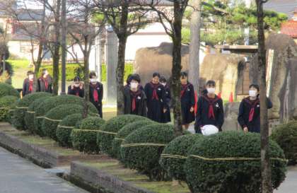 昨日に続き、大変暖かい日になりましした。8:00現在で23度ほどの気温です。男子生徒ではYシャツ姿が見られましたが、しっかり防寒着を着ている生徒もいました。