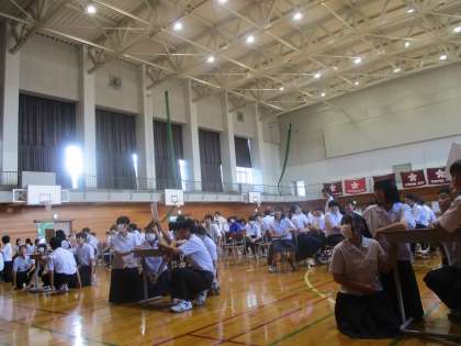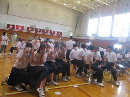 本日の5、6限目は学年生徒会によるレクリエーションが行われました。クラス全員で体育館を走って合計8分を目指そう「ピッタリリレー」、前期の学習内容から5教科のクイズを作成した「Let's Quiz!」を行いました。みんなとても楽しんでいました。
