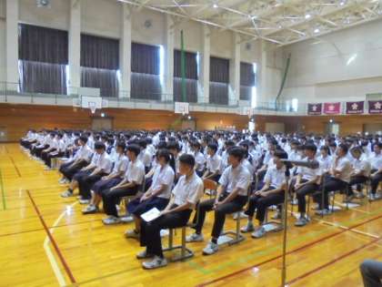 7名の生徒会長候補者と4名の執行委員候補者による立会演説会が行われました。どの候補者も推薦弁者も大沢野中学校をもっと良くしたいという熱い思いを一生懸命に訴えていました。