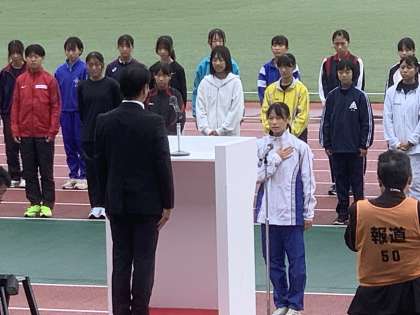 10月5日(土)富山県中学校駅伝競走大会 公開日 2024/10/05 更新日 2024/10/05 部活動について 富山県中学校駅伝競争大会に本校駅伝部が出場します。 本校代表生徒が選手宣誓を行いました。