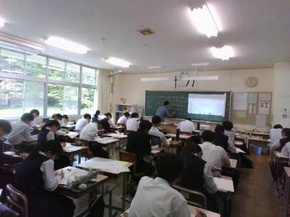 31H:社会 実習生の先生の最後の授業を、集中して取り組んでいます。