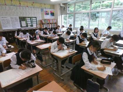 5限は、中間考査の範囲表を基に、学習計画を立てたり、後期の学級役員を決めるための話し合いを行ったりしました。全員が自分にできることを考え、積極的に取り組む様子が見られました。