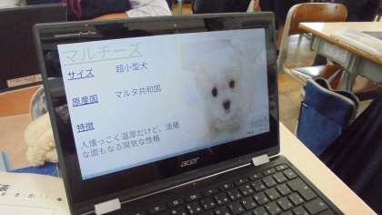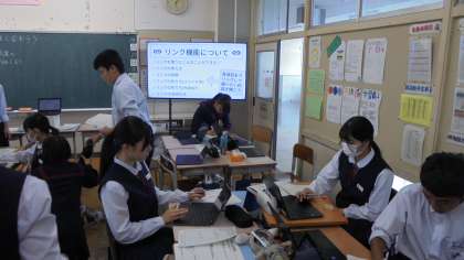 授業中の様子です。中間テストや中教研学力調査が近づいています。知識を身に付けるためには家庭学習も大切です。技術ではクロームブックで作成したスライドショーの発表を行っていました。