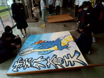 体育大会以降、生徒玄関で皆さんを見守っていたデコレーション達と最後のお別れです。