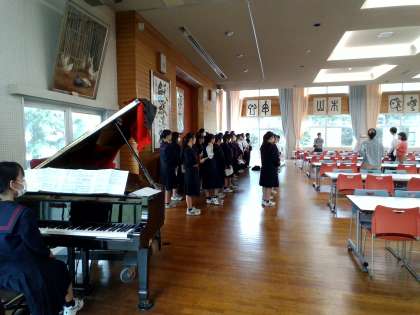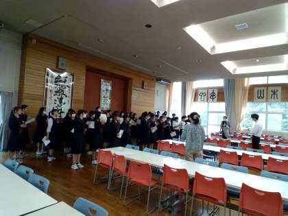 放課後のランチルームに、素晴らしい歌声が響き渡りました。本校文化祭に向けた各クラスの合唱練習と並行して、3学年選抜合唱隊では「キミのもとへ…」の練習を進めています。
