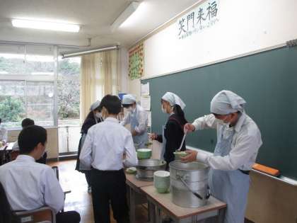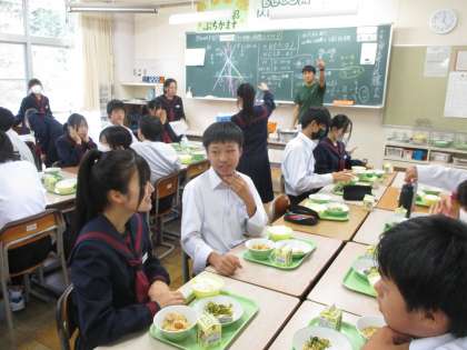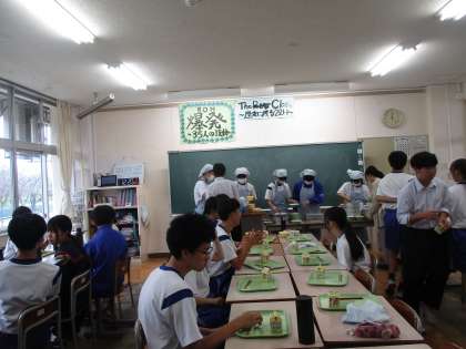 2学年学年生徒会では、「10分王」というタイトルで、給食の準備、掃除を10分以内に終え、その後の時間を有効に使おうという企画をしてます。目標を達成するために各クラス協力して頑張っています。