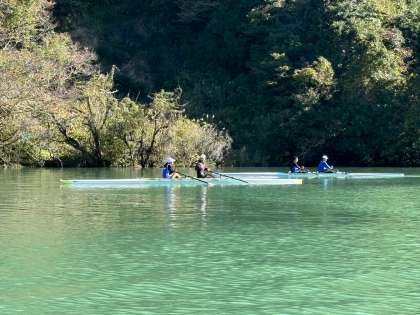 ボート部は秋晴れの中、久々の乗艇練習を行いました。