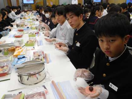 石川県観光物産館で和菓子づくり体験を行いました。職人さんの指導のもと、見よう見まねで挑戦しました。
