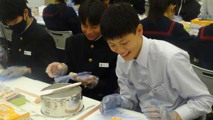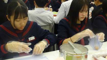 石川県観光物産館で和菓子づくり。和菓子の種類で様々な作り方があり、苦戦中?!。完成品はお持ち帰りしました。