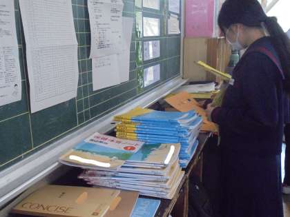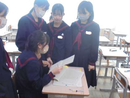 1学年では、テスト前の着席完了時刻まで級友と問題を出し合ったり提出物の出し忘れがないかチェックしたりする様子が見られ、中学生らしい姿が増えてきました。