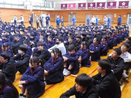 各教室で避難経路や避難時の心構え等を確認した後、火災を想定して素早く避難完了することができました。