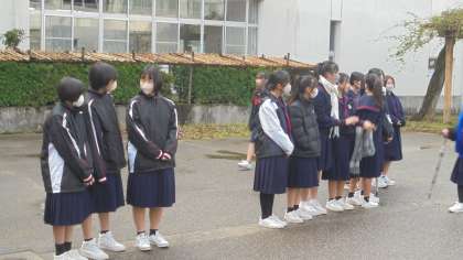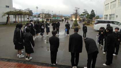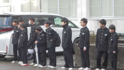 昨日で期末考査も終わり、今日からあいさつ駅伝再開です。今日の当番は1年4組でした。朝から元気な声で「おはようございます」とたくさんの人にあいさつしていました。大沢野中学校の伝統、みんなで繋いでいきましょう!